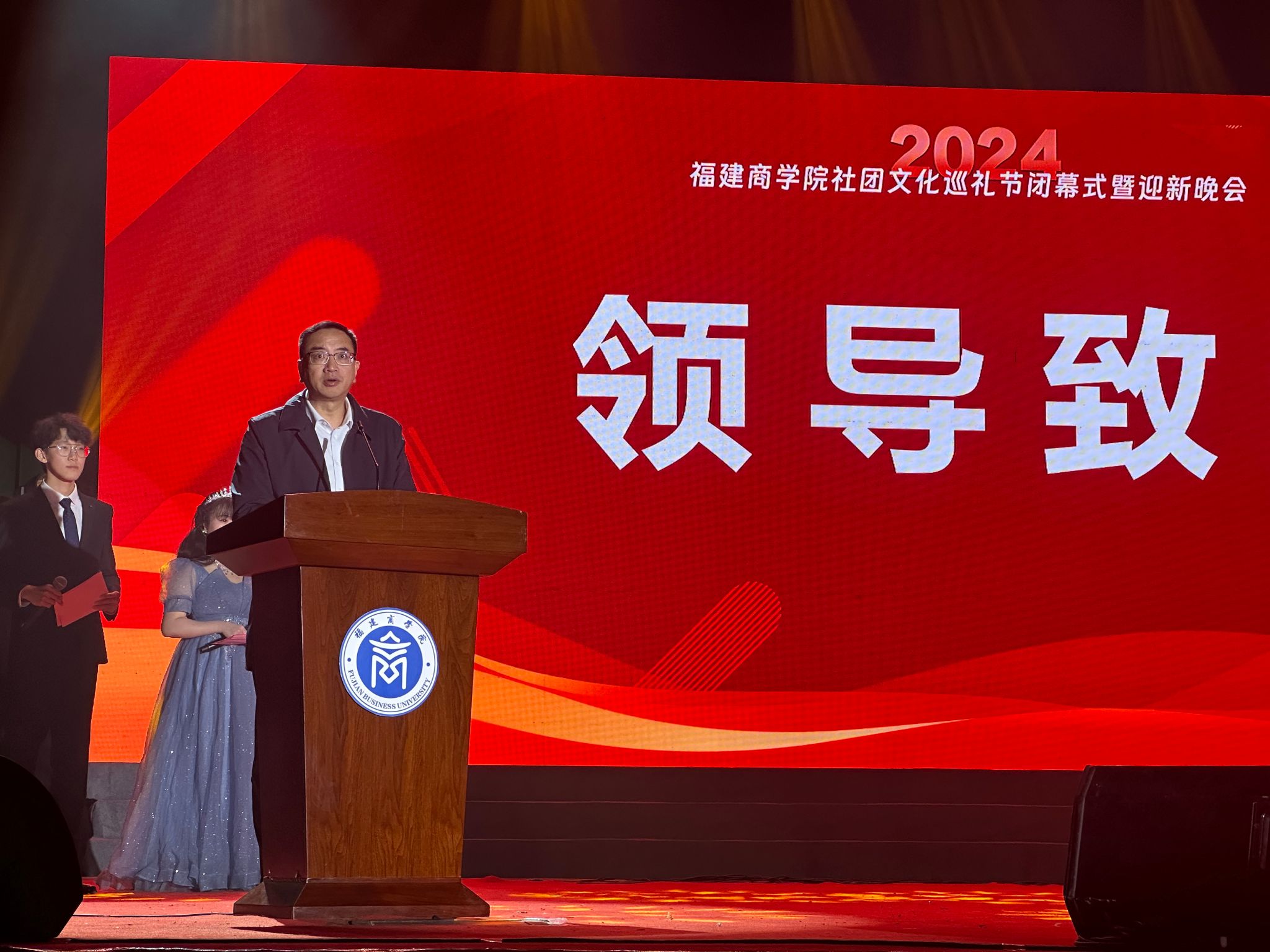 近日,必赢官网2024年“青春颂华诞,社韵耀福商”社团文化巡礼节闭幕式暨迎新晚会在连江校区学生活动中心举行。校党委副书记蒲文庆、副校长林文艺出席晚会,有关部门负责人、社团业务指导单位负责人、二级学院团委负责人和社团指导老师、社团学生代表参加。