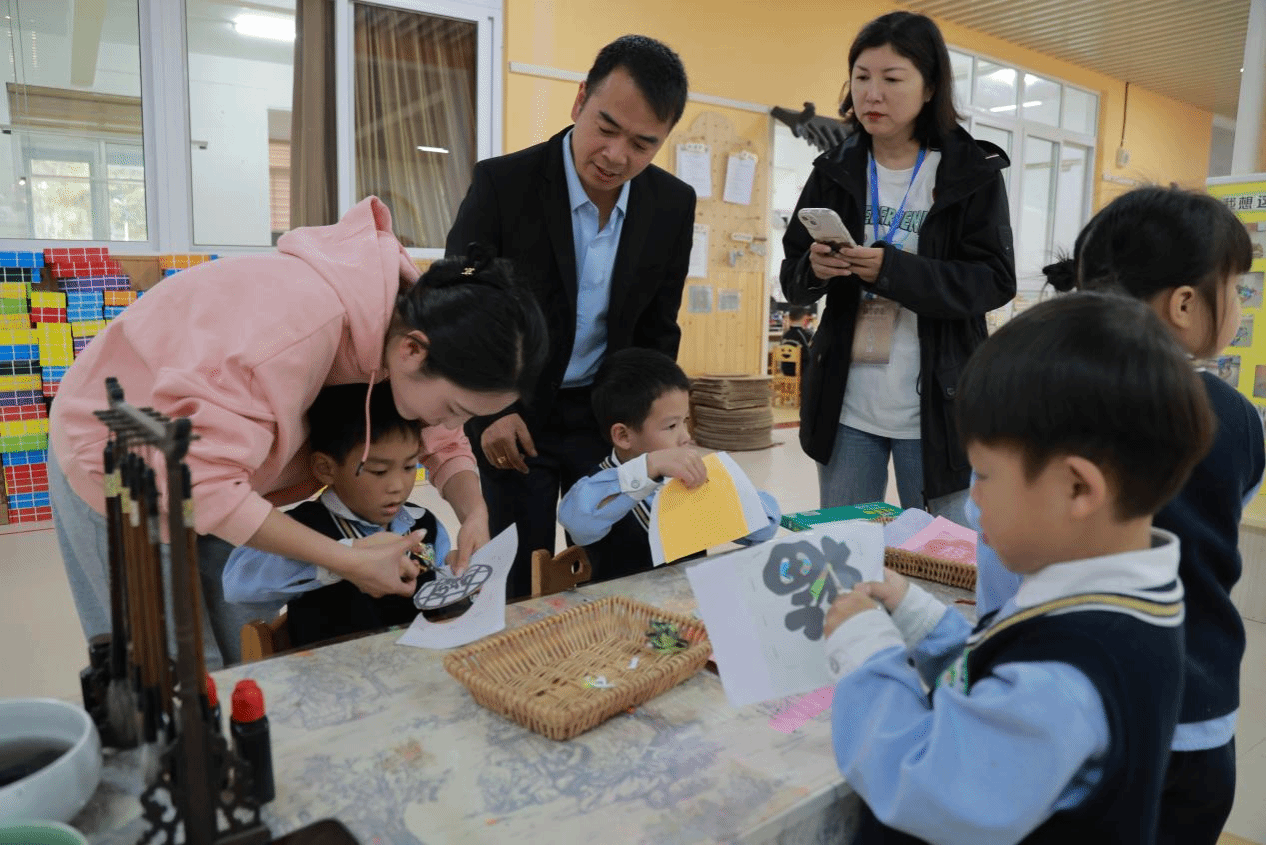 在柘荣县第一幼儿园,学员们调研了非遗文化进校园的情况。幼教老师用富有童趣的方式向孩子们教授柘荣剪纸、传统绘画、甜品制作等技艺,培养孩子们的实践动手能力。在丰富多彩的非遗活动浸润中,孩子们对柘荣优秀传统文化有了初步的认识并产生了浓厚的兴趣,非遗文化在更多孩子心中生根发芽,为培育下一代非遗传承人打下良好基础。