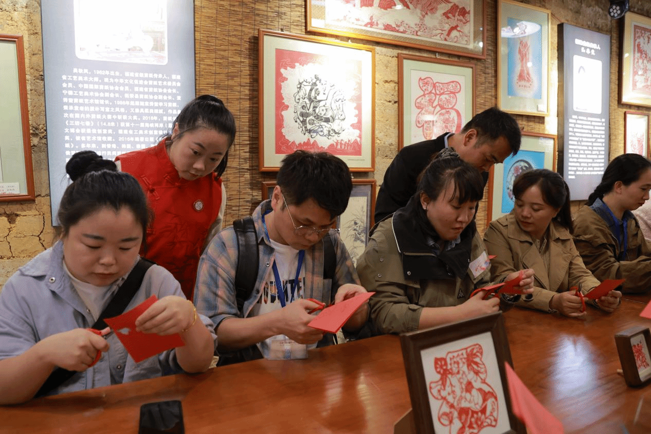 学员们体验非遗剪纸技艺