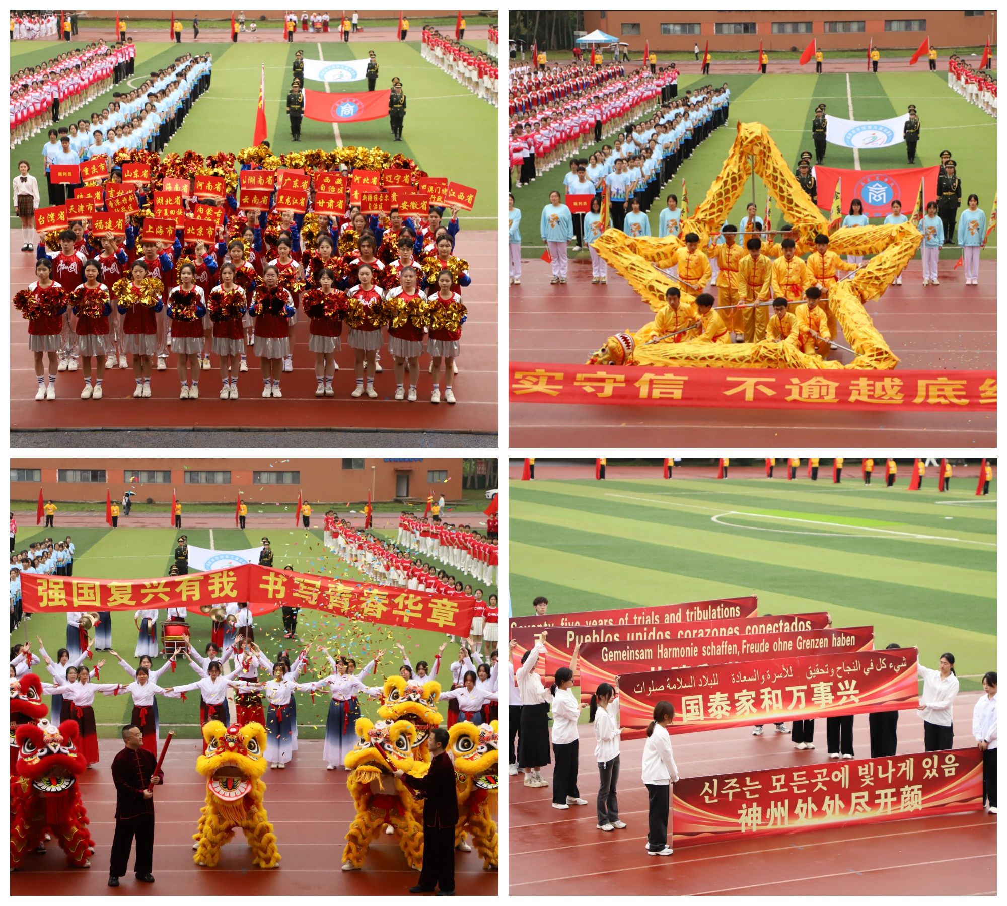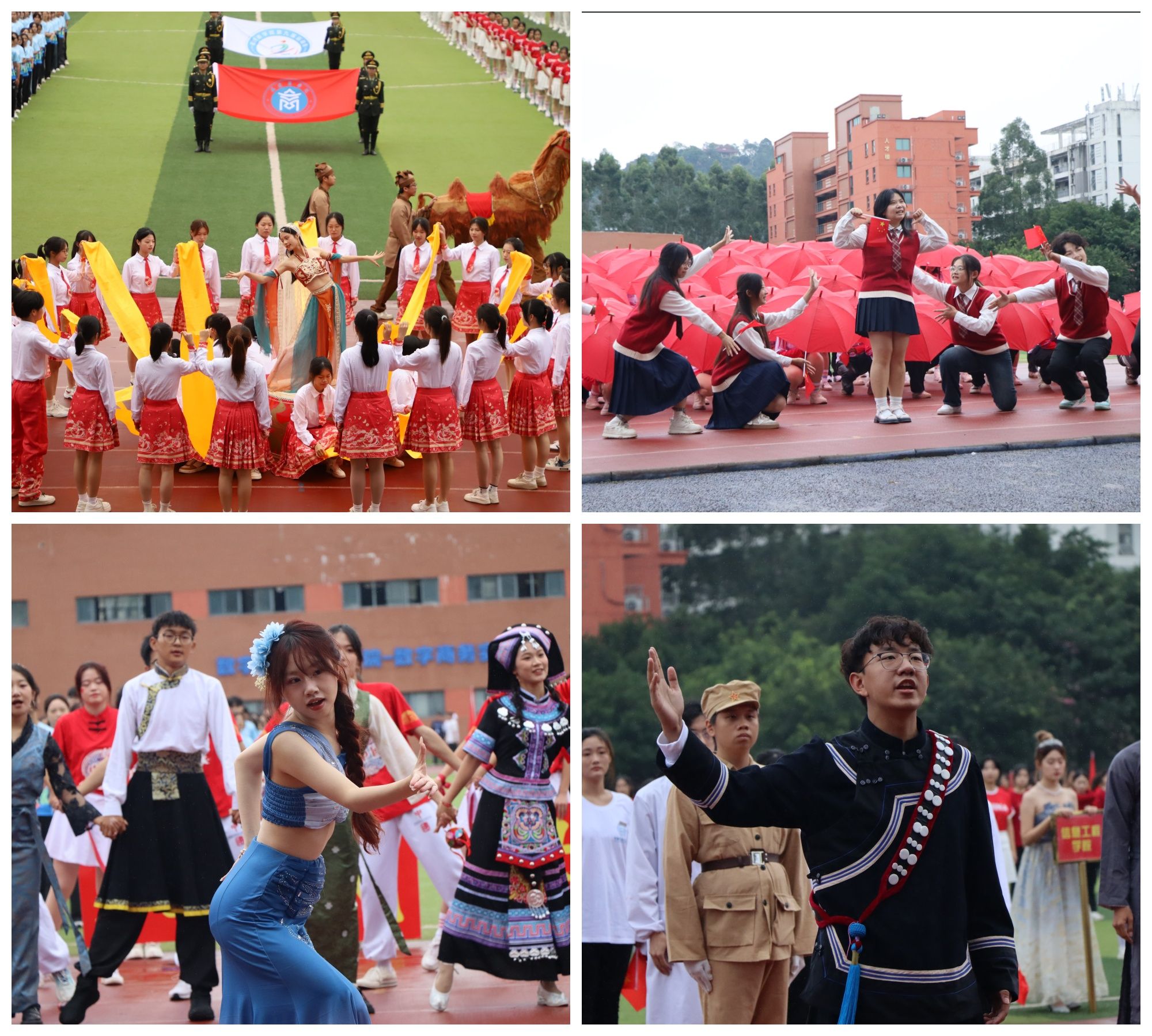 入场仪式上,国旗、校旗、会徽方阵,彩旗队、裁判队、各二级学院代表队方阵等依次入场,精彩纷呈的入场式展演和整齐划一的团体操表演,展现了各学院的鲜明特色和新时代福商师生朝气蓬勃、奋发向上的精神风貌。在全省大学生街舞锦标赛中荣获原创作品综合齐舞(小集体)第一名的街舞代表队也在现场作了精彩的表演。