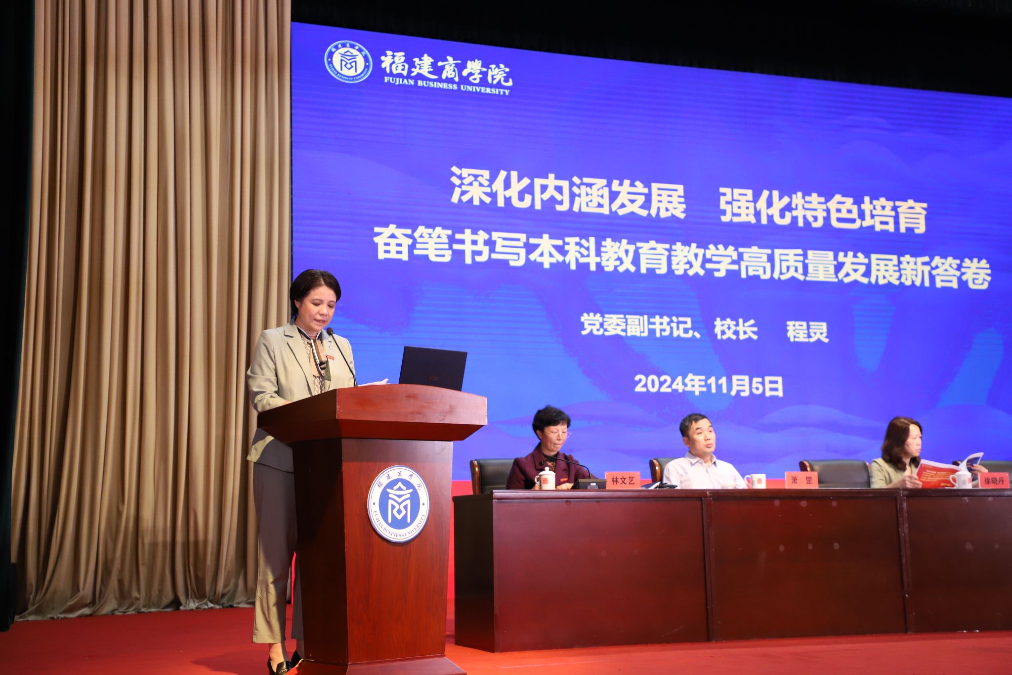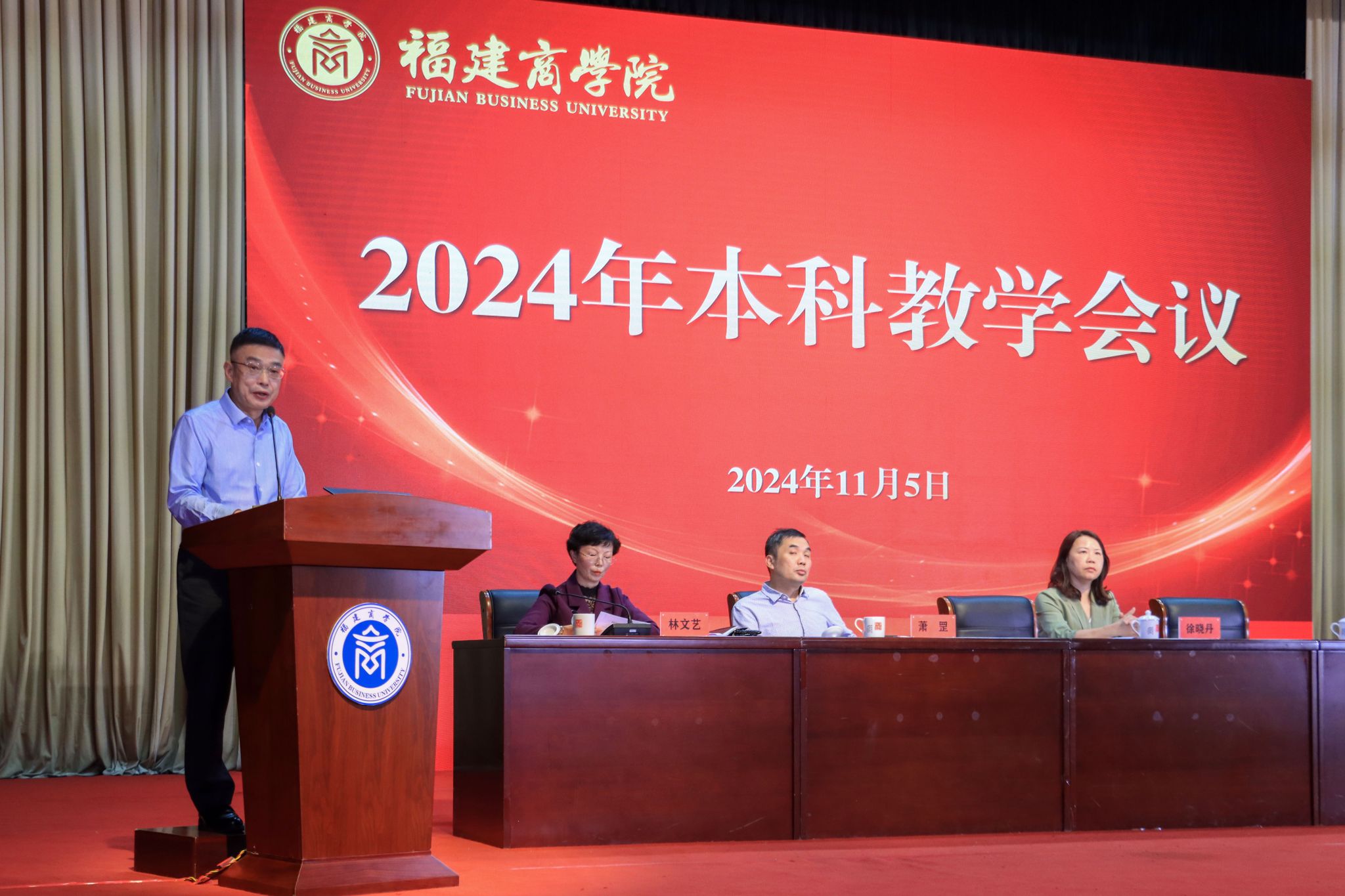 11月5日下午,必赢官网在连江校区明德楼学生活动中心召开2024年本科教学会议。会议主题为“深挖内涵,培育特色——加快建设区域知名商科大学”。全体在家校领导,机关处室、教辅机构科级以上干部,各二级学院领导、教师代表参加。会议由副校长林文艺主持。