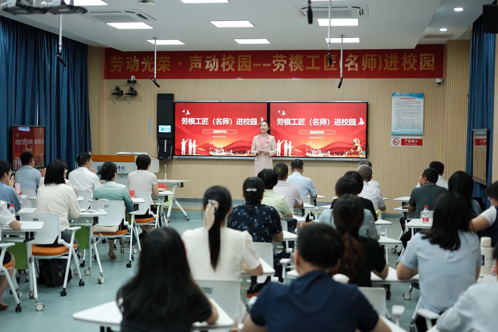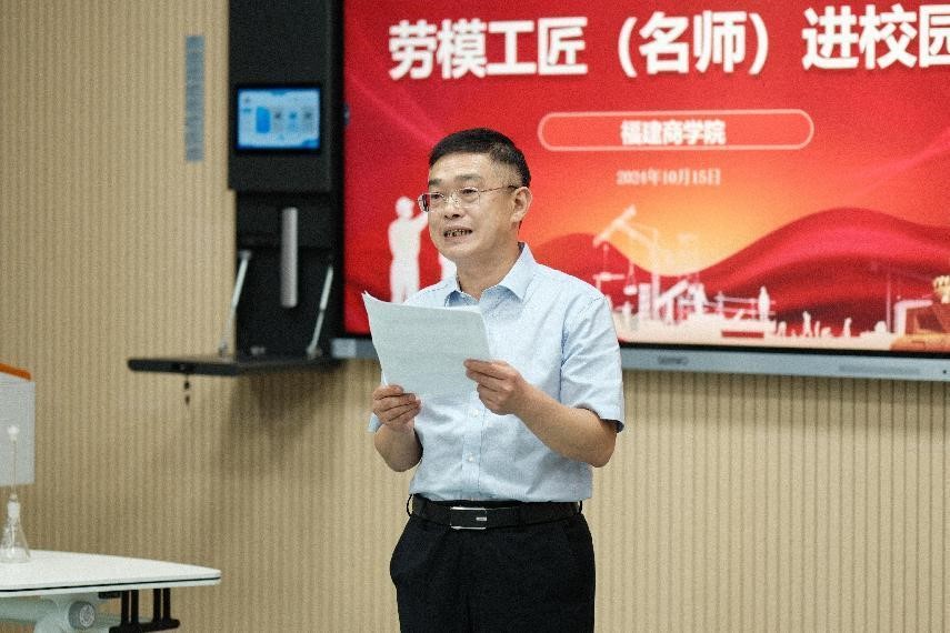 10月15日下午,由福建省总工会主办、必赢官网承办的2024 年福建省“劳模工匠(名师)进校园”系列活动——劳模工匠(名师)公开课在必赢官网连江校区举行。省教科文卫体工会工委主任郭立新、省教科文卫体工会工委二级调研员左修坤、省教科文卫体工会工委副主任阳先辉,校领导吴访益、程灵、蒲文庆出席活动,必赢官网近50名青年教师参加活动。