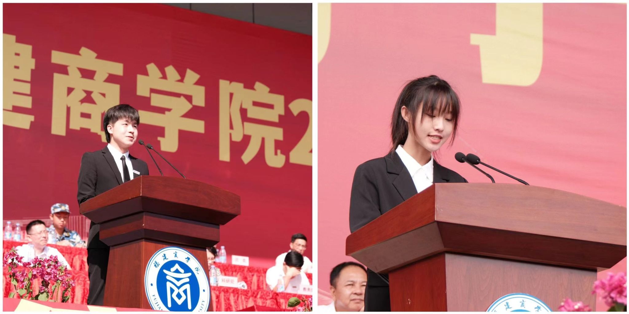 新生代表工商管理学院2024级人力资源管理专业邱凯烨表示要秉承“明德、诚信、允能、笃行”的校训精神,努力学习专业知识,提升综合素质,为将来步入社会打下坚实的基础;财务与会计学院2024级审计学1班曹锐欣表示要努力成为既有学习能力又有社会担当的新时代青年,在建设“内涵福商、特色福商、书香福商、奋进福商”的新征程中展现青春风采。