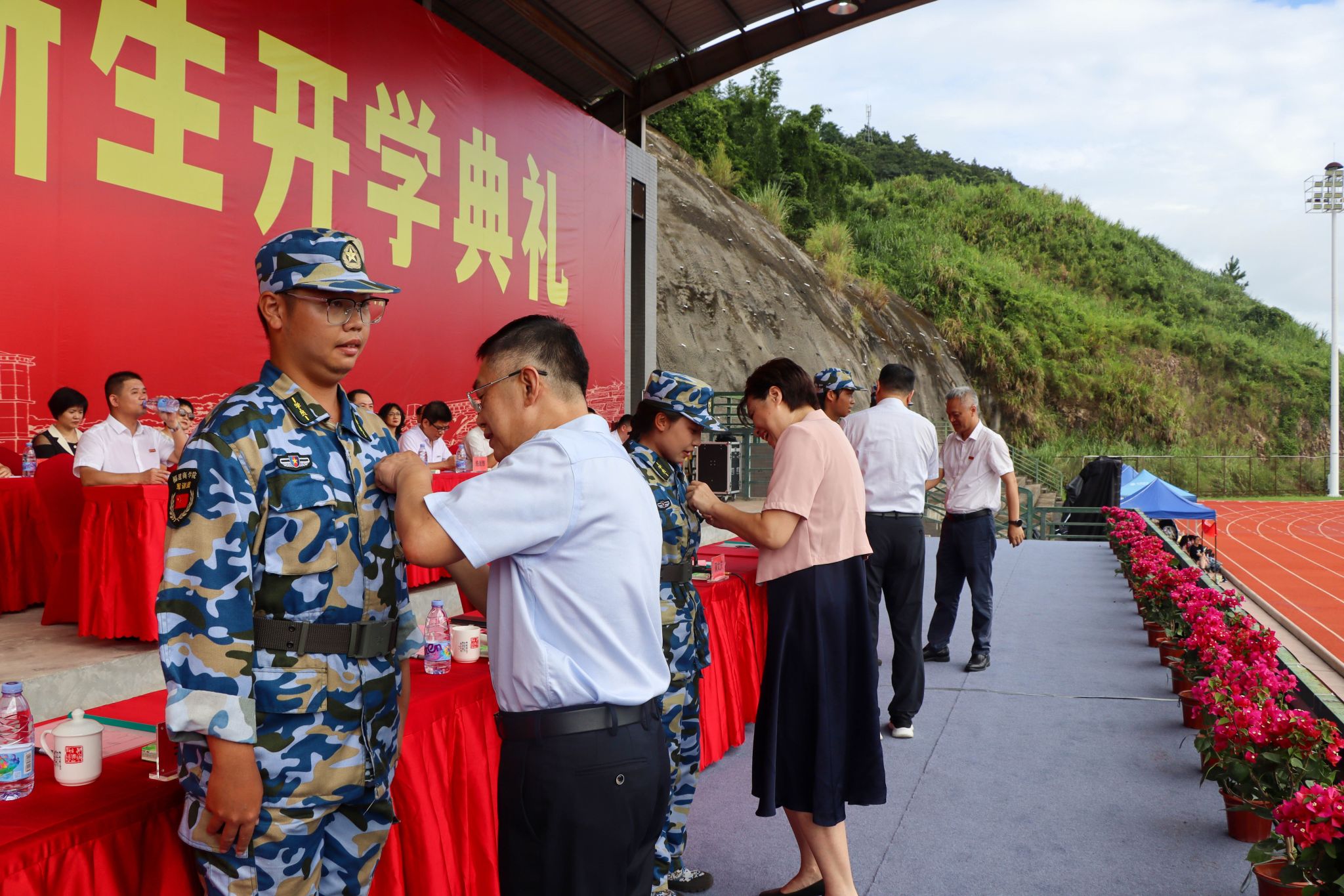 在庄严雄壮的国歌声中,新生开学典礼拉开序幕。校领导为新生代表佩戴校徽,新生胸前“必赢国际437官网”这五个字格外醒目,将成为镌刻在这批新福商人心中一生的印记。
