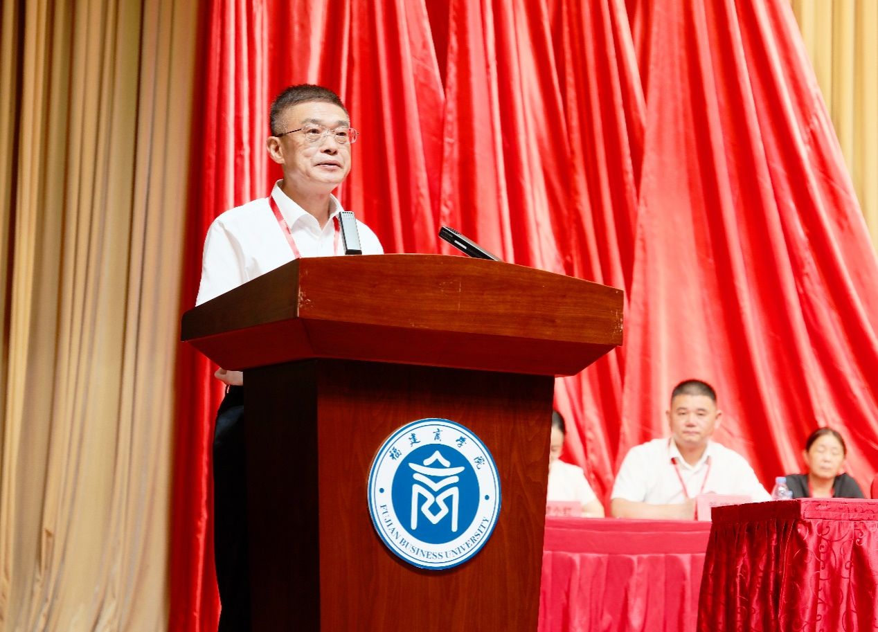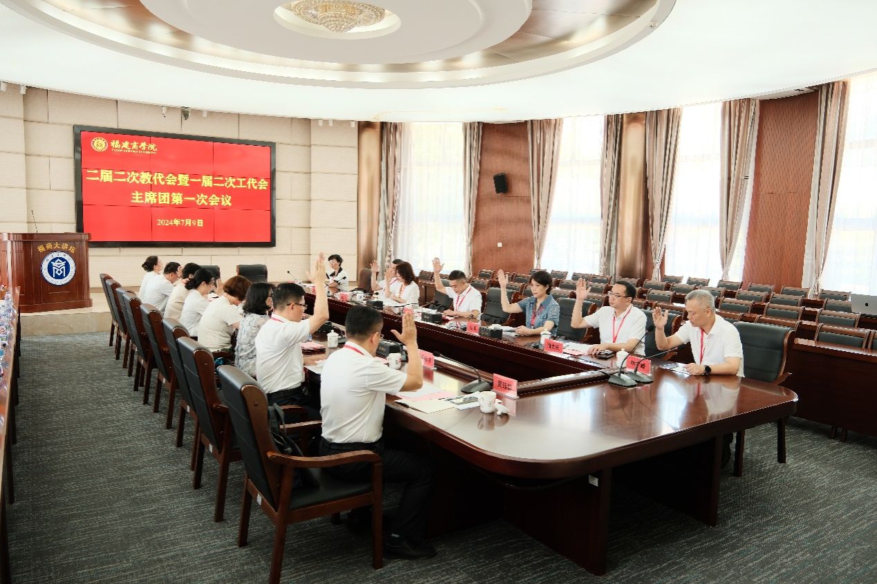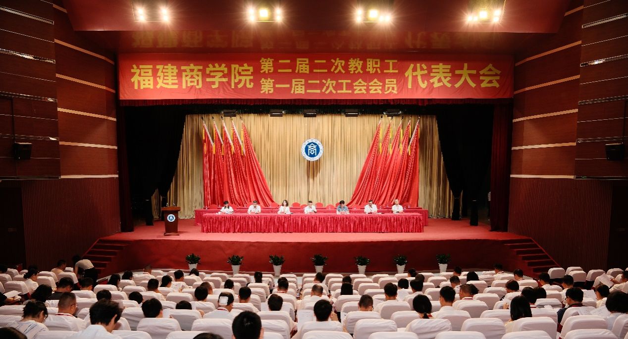 7月9日,必赢国际437官网二届二次教代会暨一届二次工代会在连江校区明德楼福商青春礼堂召开。全体校领导出席会议,正式代表和列席代表200人参加会议。会议由校党委副书记蒲文庆主持。