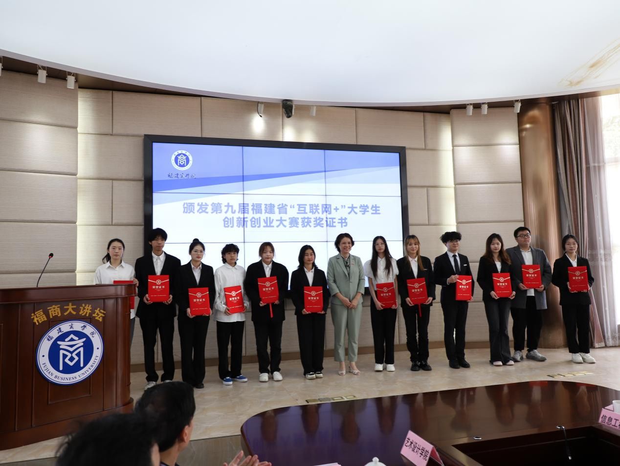 校长程灵为第九届福建省“互联网+”大学生创新创业大赛获奖项目学生团队颁发省赛获奖证书