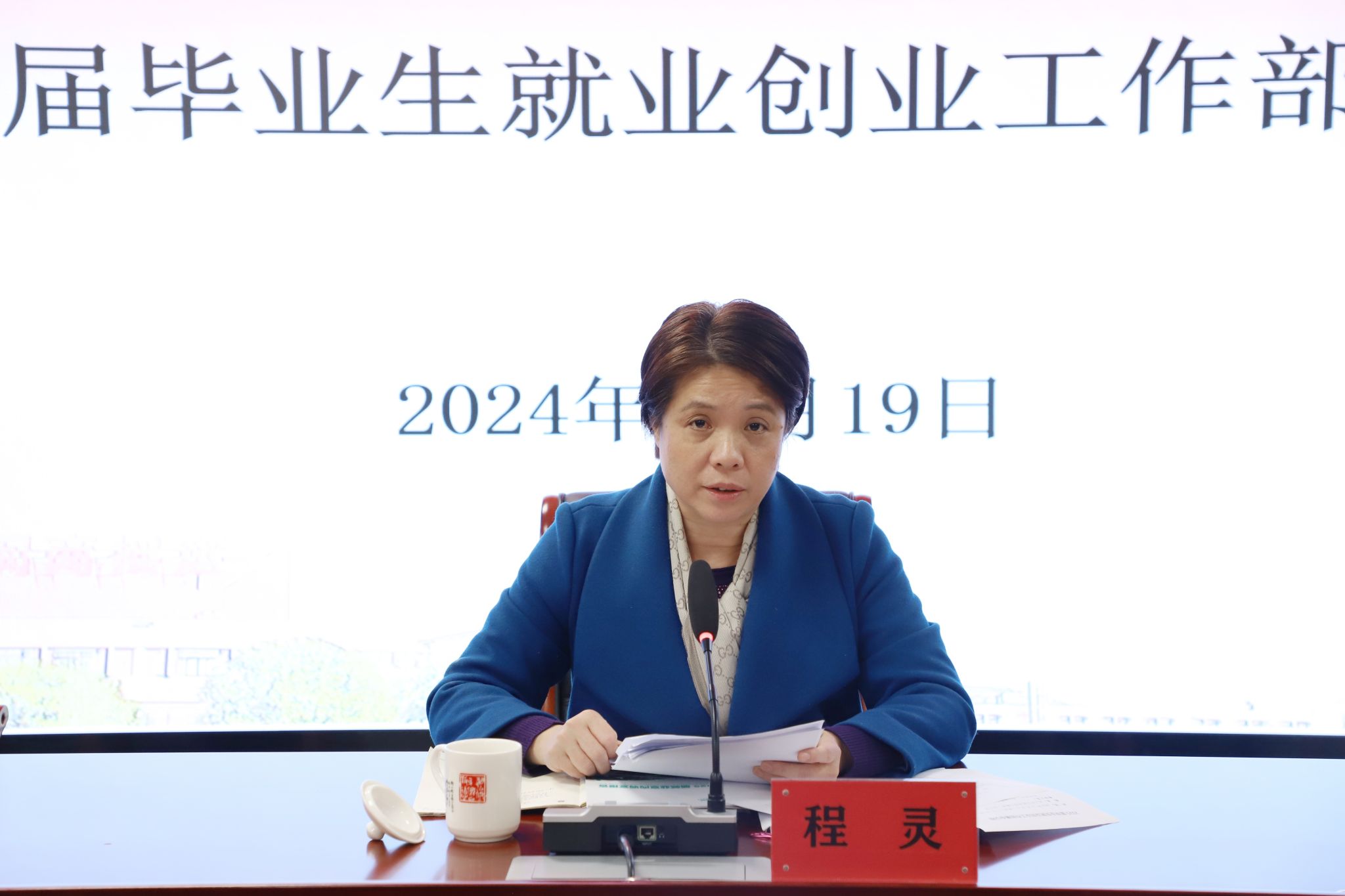 程灵对2024年全校就业创业工作给予了充分肯定,指出做好毕业生就业创业工作责任重大、使命光荣。她就做好2025届毕业生就业创业工作强调:一要锚定目标,夯实责任抓就业。二要拓宽渠道,多元开发促就业。三要精准帮扶,抓好重点保就业。四要加强宣导,扶持引领扩就业。