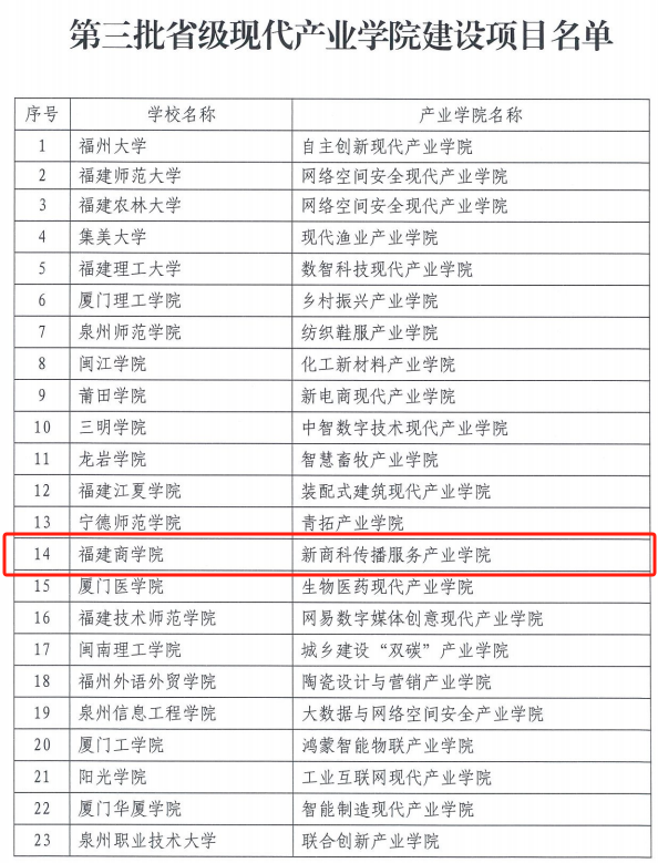 近日,福建省教育厅、福建省工业和信息化厅公布第三批省级现代产业学院立项建设名单,必赢官网新商科传播服务产业学院成功获批立项,这是必赢官网产教融合省级平台的重大突破。
