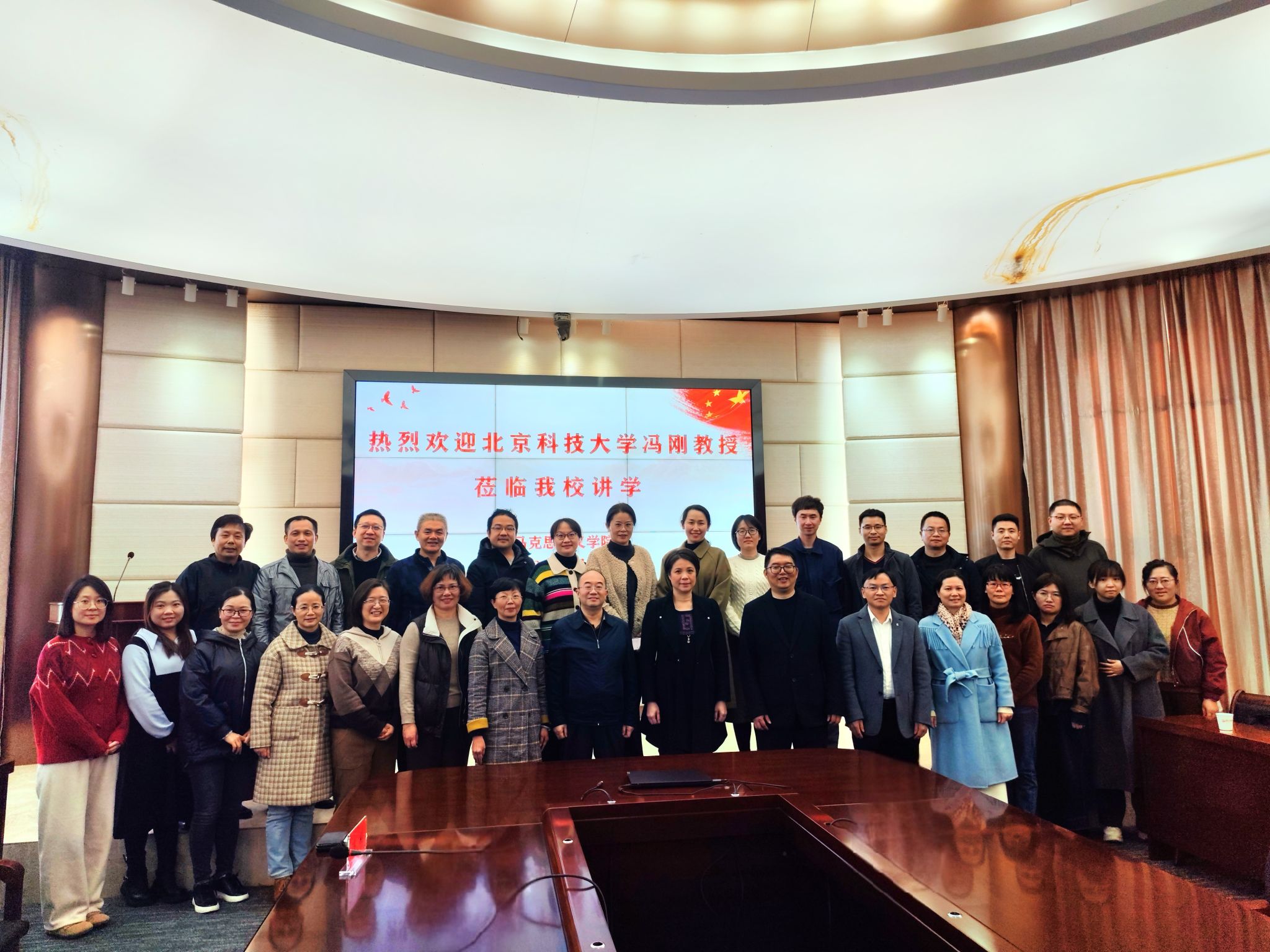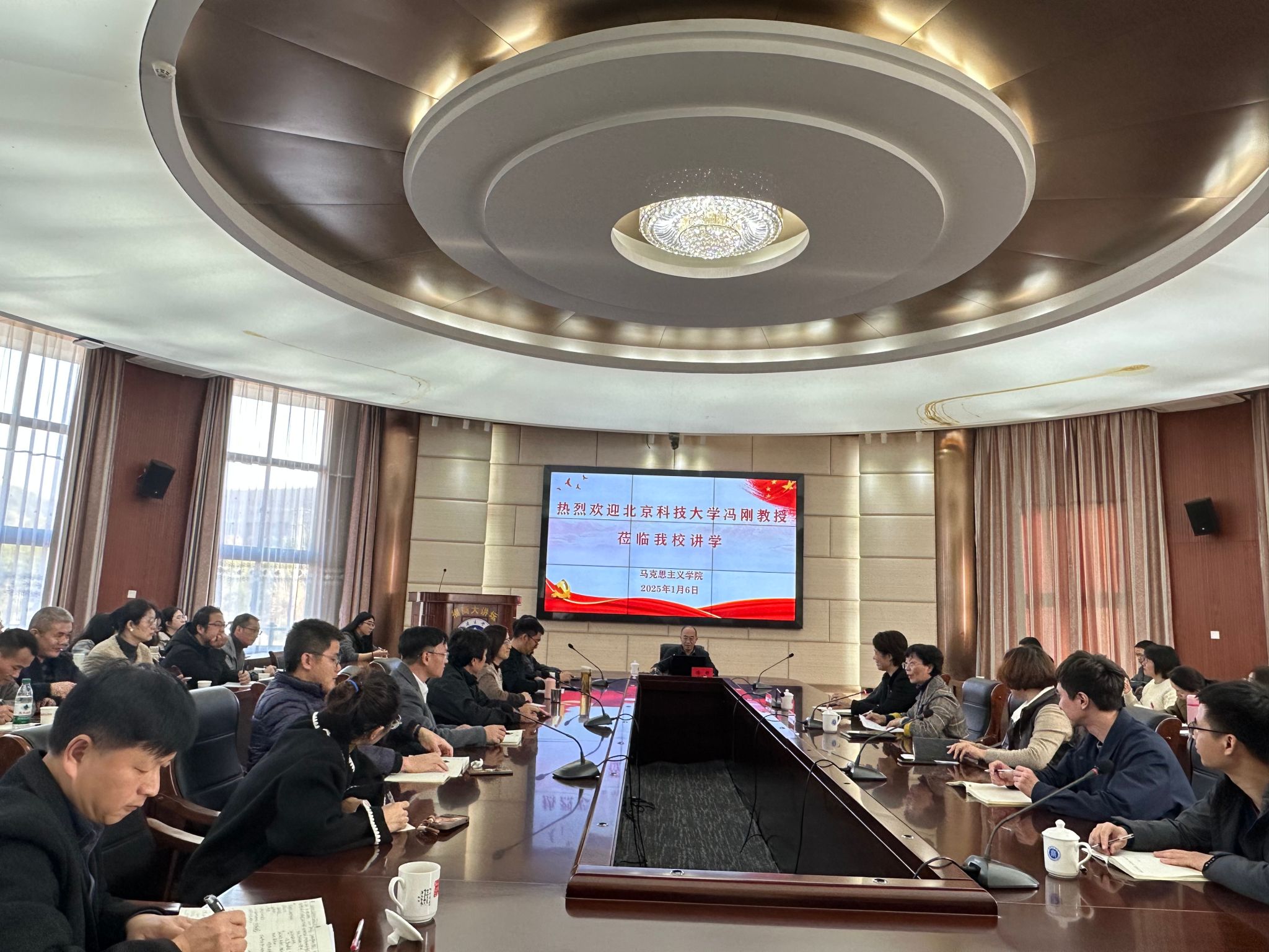 1月6日下午,北京科技大学思想政治工作研究院院长、教育部思政司原司长冯刚教授应邀来必赢官网作题为《文化现代化视域下的思想政治教育创新发展》的学术讲座。校领导程灵、林文艺,有关部门负责人、马克思主义学院全体教师及辅导员等80余人参加学习。