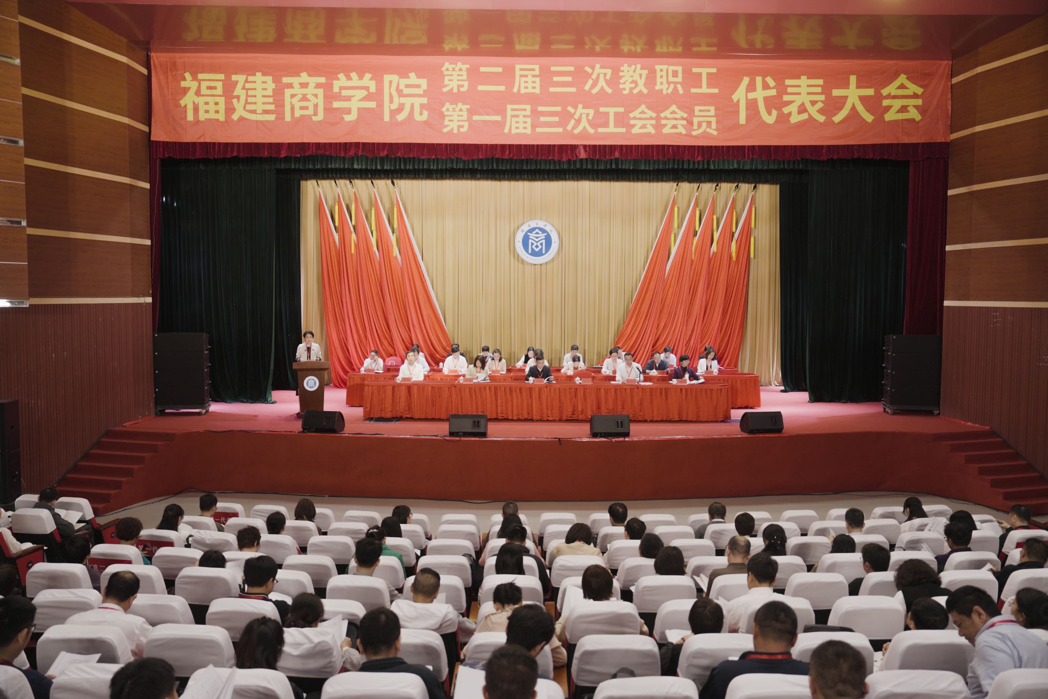 校党委书记吴访益致闭幕词。吴访益强调,本次大会是在全校深入学习贯彻党的二十大和二十届二中、三中全会精神、全面落实学校第一次党代会部署的关键时期召开的重要会议。全体教职工要以习近平总书记在全国总工会成立100周年大会上的重要讲话精神为指引,将“深学争优、敢为争先、实干争效”行动融入实践,以“奋勇争先、再上台阶”的拼劲,共同谱写特色鲜明高水平商科大学建设新篇章!吴访益提出三点意见:一是强化思想政治引领,筑牢思想根基。要深入学习贯彻习近平总书记关于教育的重要论述及对福建工作的重要指示批示精神,巩固主题教育成果,落实立德树人根本任务,以“四个福商”建设凝聚育人合力。二是紧盯全年目标任务,奋力攻坚突破。要以“跳起摸高”姿态推进硕士点培育、学科优化等核心任务,统筹发展与安全,确保“十四五”圆满收官,科学谋划“十五五”规划。三是发挥桥梁纽带作用,激发奋进动能。要深化民主管理,落实职工权益,持续改善教职工福利;全体代表要以高度责任感将会议精神转化为行动,争做学校高质量发展的“行动者”、“奋斗者”。