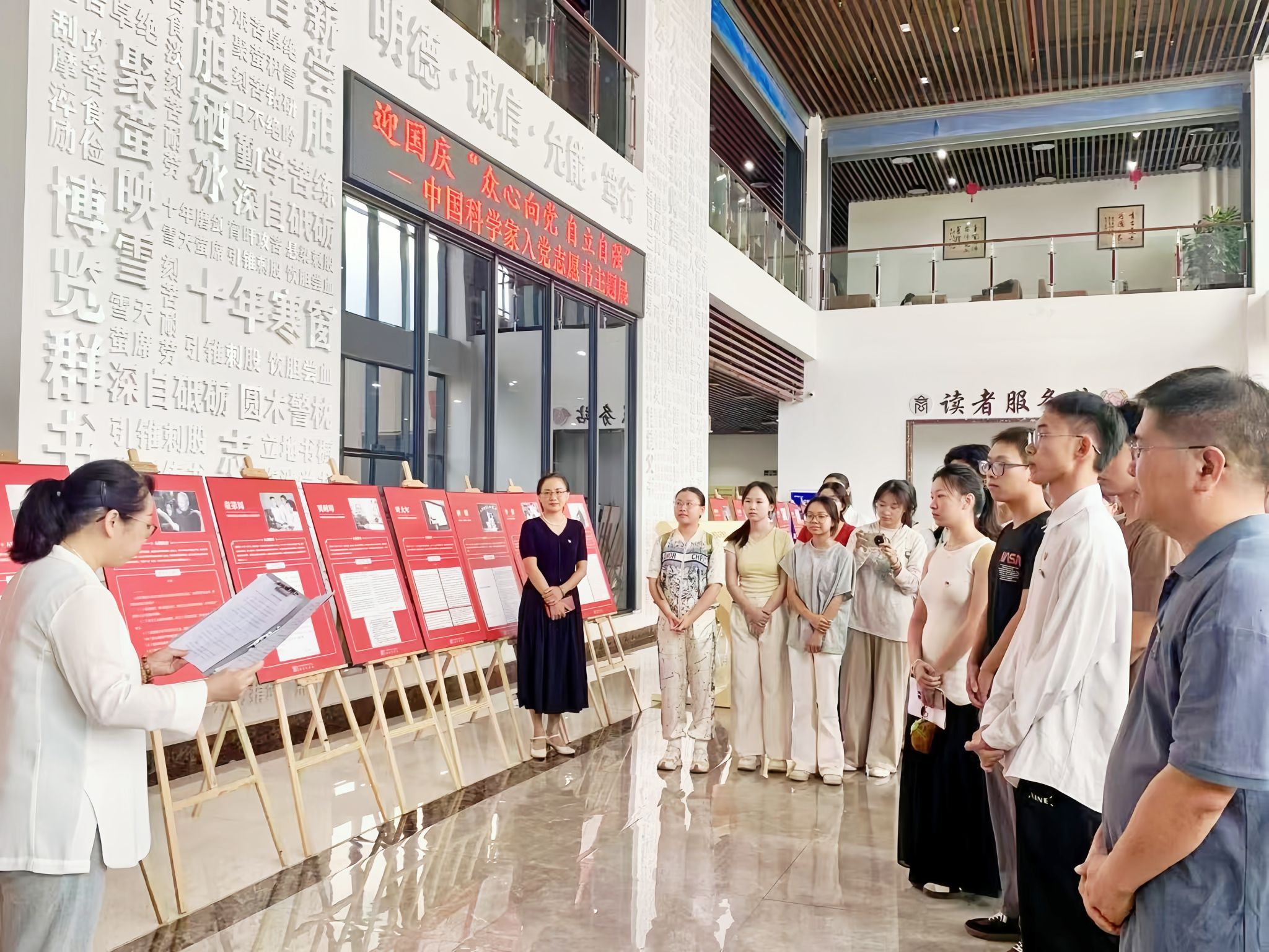 “众心向党 自立自强——中国科学家入党志愿书主题展”集中展出50位杰出科学家亲笔书写的入党志愿书,这些珍贵档案跨越时空,串联起从“两弹一星”元勋到当代科技领军人物的红色传承谱系。展览推出后,已有近2000名师生前往参观学习。