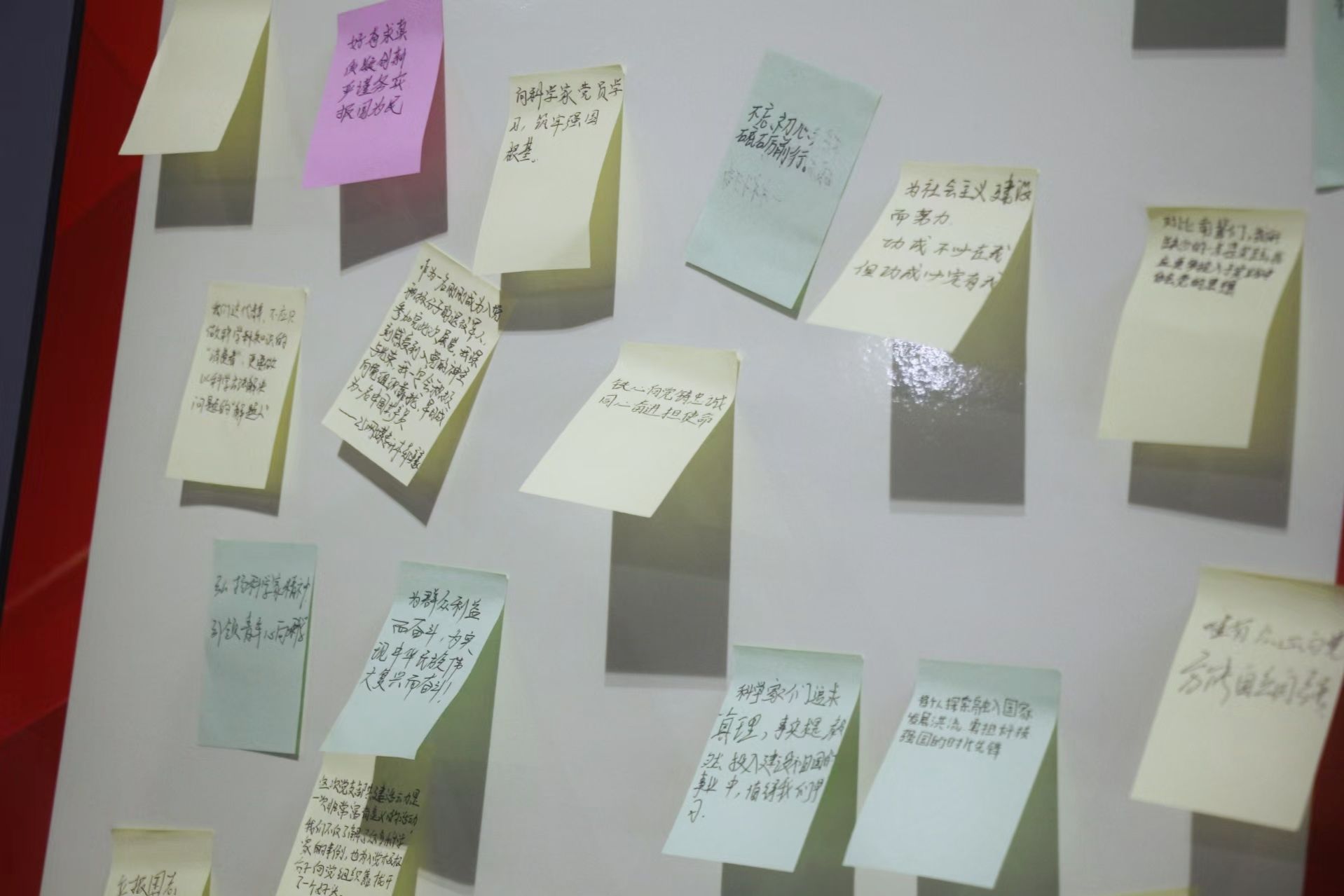 活动中,图书馆教师党员向同学们讲述了科学家钱学森的入党故事,学生党员围绕“新时代青年如何传承科学精神”分享了参观学习心得感悟。同学们纷纷在留言板上留下自己的心声,“铁心向党铸忠诚,同心奋进担使命”“向科学家学习,筑牢强国根基”“在实践中领悟时代精神,以行动传承时代使命”等留言,表达了将个人的“小我”融入到祖国的“大我”之中,不忘初心、砥砺奋进,以实际行动践行“请党放心,强国有我”的青春誓言的豪情壮志。