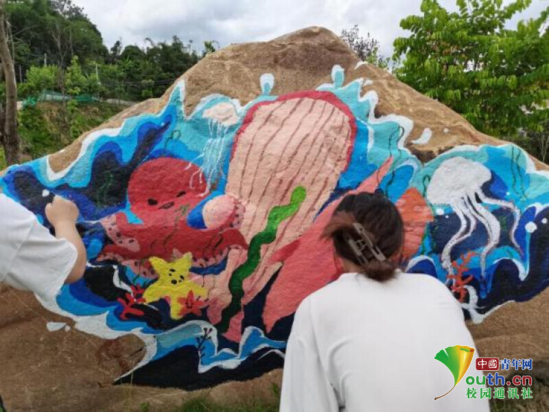 之后的几天,应魁园村水系生态保护、宣传党建文化的需要,学子们于该村分别完成了十幅石头墙绘和一幅党建文化墙绘制。一墙一风景,一石一阵地,成为美丽乡村示范片区重点村颇具特色的文化景观。学子们于实践中发挥专业能力,在为新农村建设增色添彩的同时,也成为乡村一道靓丽风景线。