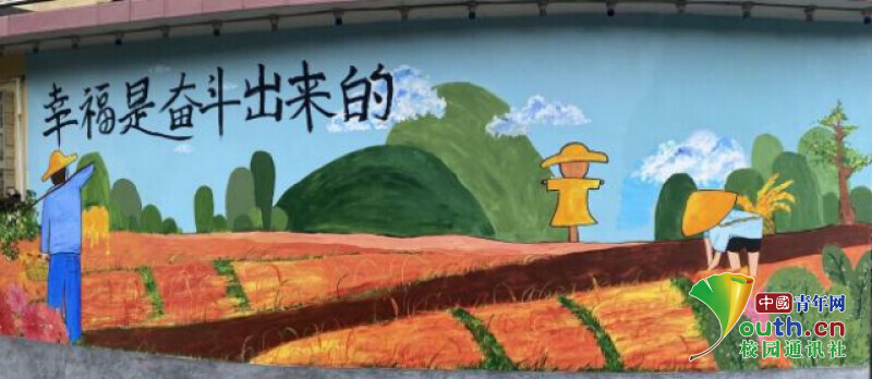 在此次墙绘设计实践活动中,“乡村振兴”、“尊老近亲”等主题墙绘的修饰让乡村不再单调乏味,美丽的自然风光也给这些墙绘增光添彩,一幅幅美丽的墙绘与乡村的自然风光相得益彰。