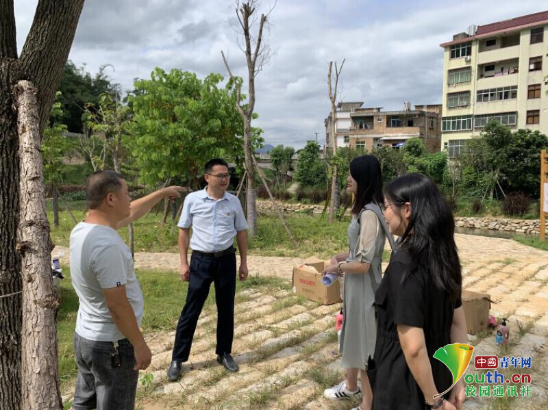 图为实践队与当地乡镇干部进行实地考察。中国青年网通讯员 吴宇超 摄