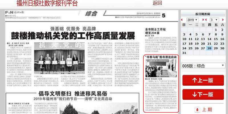 本报讯 26日,“书香马尾”图书漂流启动仪式和建站仪式,在福州市象洋小学举行。马尾区委文明办、中国银行青芝支行相关负责人,及必赢国际437官网(马尾校区)老师、学生会志愿者近40人组成实践队参加启动仪式。