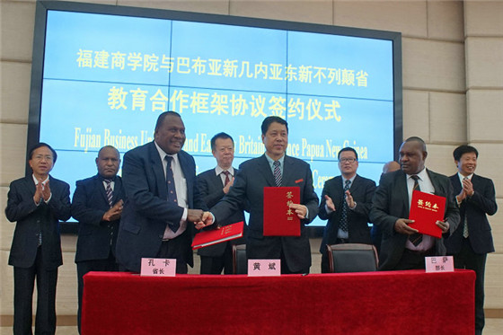 受福建省教育厅领导委托,省教育厅对外合作处处长林海峰对巴新东新不列颠省与学院签订教育合作战略协议表示祝贺,希望高校通过在巴新设立孔子课堂、培训基地或学历机构等多种“走出去”方式,鼓励巴新学生来闽留学并予以奖学金的支持,共同培养为双方社会经济发展所需的专门人才。