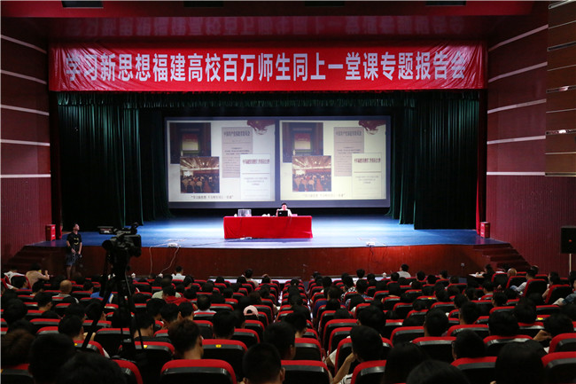 6月12日上午,“学习新思想 千万师生同上一堂课”活动走进必赢国际437官网,省委教育工委副书记、福建省高校学习贯彻习近平新时代中国特色社会主义思想宣讲团团长王建南为该校师生作题为《用思想之光照亮奋斗之路用信仰之力开创美好未来》的专题报告。必赢国际437官网近600名师生现场聆听了报告。