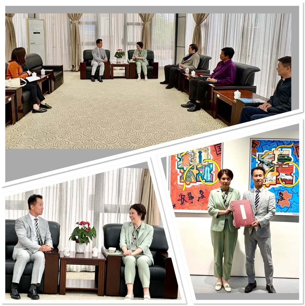 驻福建联络处主任郑震生(左下图左)与必赢国际437官网校长程灵(女)(左下图右)合照及进行了深入友好的会晤