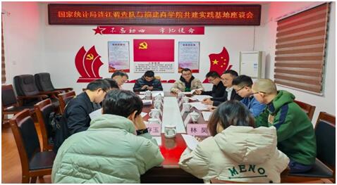 授牌仪式后,双方进行了交流座谈,金融学院党委负责人介绍了学院的办学历史、学科专业建设、新型人才培养等概况,他表示,金融学院始终坚持以服务社会为己任,以培养高素质金融人才为目标,希望深化与国家统计局连江调查队的交流合作,充分发挥各自资源优势,形成产学相融的长效机制,进一步强化学院教师的实践能力,共建学生实践平台。黄伟艺介绍了连江调查队的基本情况、业务范围及未来规划等情况,他表示,要积极推动双方合作共赢,希望能以此为契机,加强产学共融,进一步提升连江调查队的理论和服务水平,开拓共建合作新格局。会上,双方就“连江县鲍鱼生产者价格指数体系”建设项目展开了深入研讨,达成了合作共识。