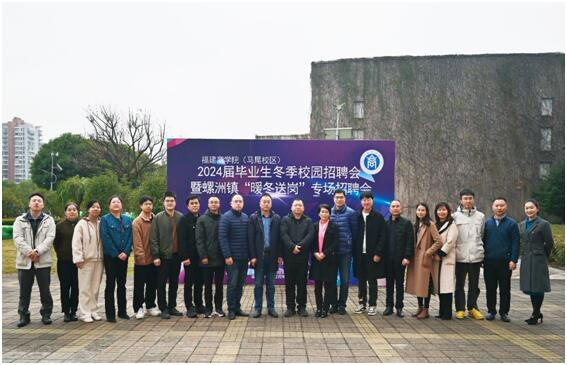 近日,国际经贸学院和螺洲镇人民政府在必赢官网马尾校区联合举办2024届毕业生冬季校园招聘会暨螺洲镇“暖冬送岗”专场招聘会。国际经贸学院党政领导班子,螺洲镇镇长王坚、螺洲镇党委委员汪昆辉等参加活动。
