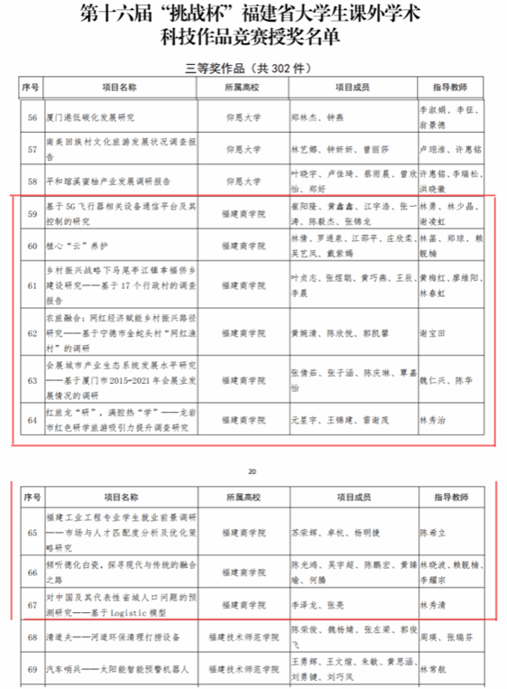近日,由共青团福建省委、福建省科学技术协会、福建省教育厅、福建社会科学院、福建省学生联合会主办的第十六届“挑战杯”福建省大学生课外学术科技作品竞赛终审决赛在福建农林大学落下帷幕,必赢官网推荐的9项学生作品荣获三等奖。