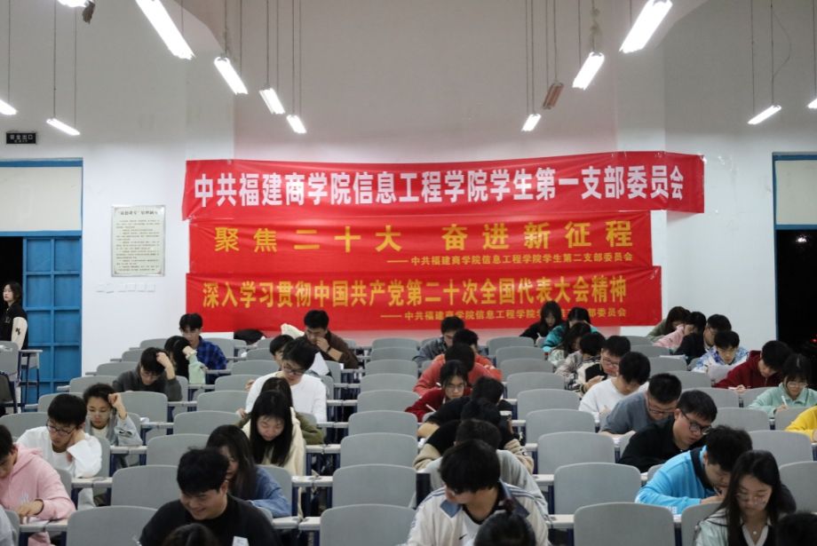 近日,信息工程学院习近平新时代中国特色社会主义思想读书社与学院学生第一、二、三党支部共建开展“聚焦二十大,筑梦新征程”学习贯彻党的二十大精神知识竞赛活动。