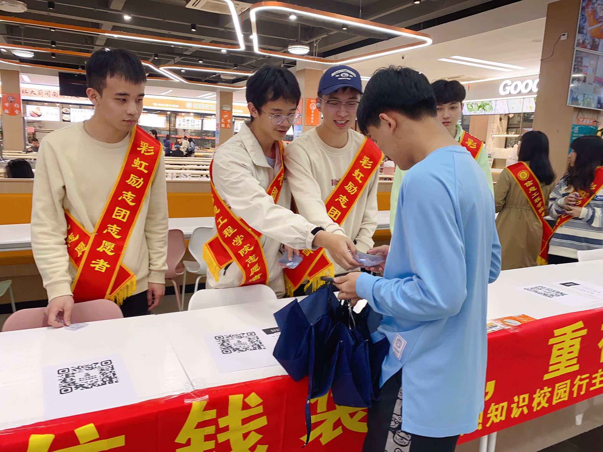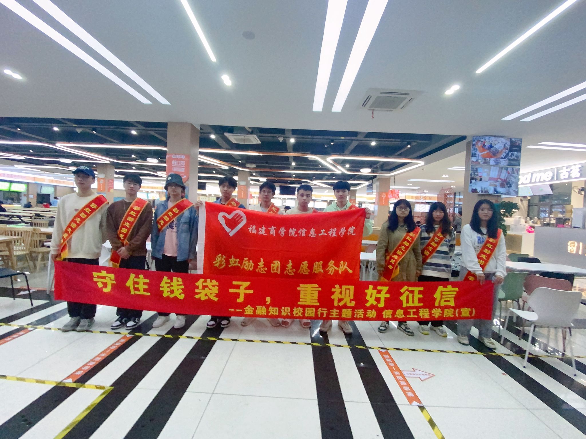 为普及大学生金融安全知识,提升同学们的金融素养,3月23日下午,信息工程学院彩虹励志团在连江校区第一食堂举办“守住钱袋子,重视好征信”金融知识校园行主题宣传活动。