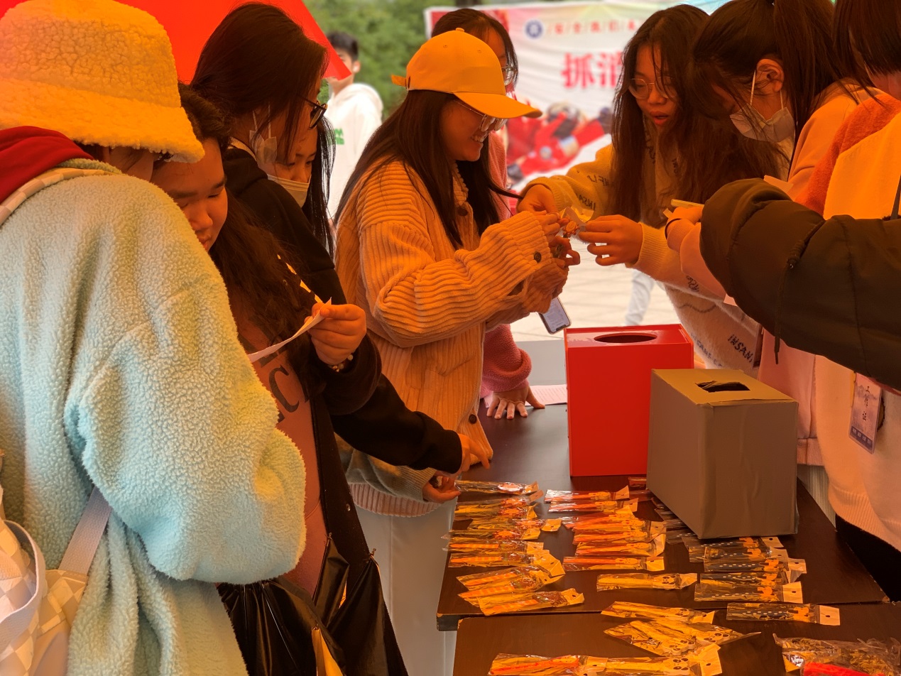在“宪法宪答”宪法知识有奖竞答活动现场,福商学子们学习热情高涨,踊跃参与答题,志愿者们向参与者解读正确答案,还积极地向他们普及宪法的相关知识,现场气氛热烈。