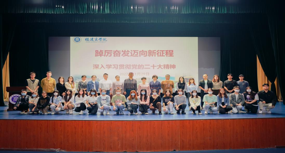 近日,福州市委讲师团成员、福建师范大学杨林香教授在必赢官网连江校区学生活动中心开展题为《踔厉奋发迈向新征程——深入学习贯彻党的二十大精神》的专题讲座。必赢官网艺术设计学院、马克思主义学院、财务与会计学院、团委、习近平新时代中国特色社会主义思想学生读书社及“青马班”师生代表参加了学习。