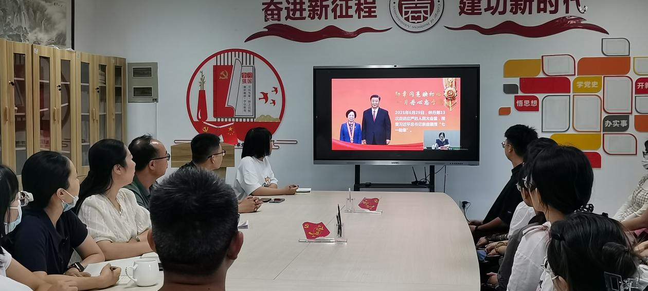 9月28日下午,工商管理学院组织全体师生观看《奋进新征程 喜迎二十大——“七一勋章”获得者林丹的故事》。学院党委班子成员、全体辅导员及学生代表在党员活动室集中观看学习。