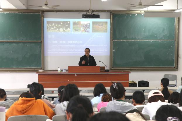 在讲座上,游源飞老师为同学们详细介绍了手机拍照三点式、拍照的一般流程、摄影的黄金构图、摄影作品的修辞手法等。游源飞老师以丰富的肢体语言、幽默诙谐的方式进行讲解,用提问的方式让同学们进行思考并切入讲座内容,激发同学们对学习摄影艺术的兴趣。
