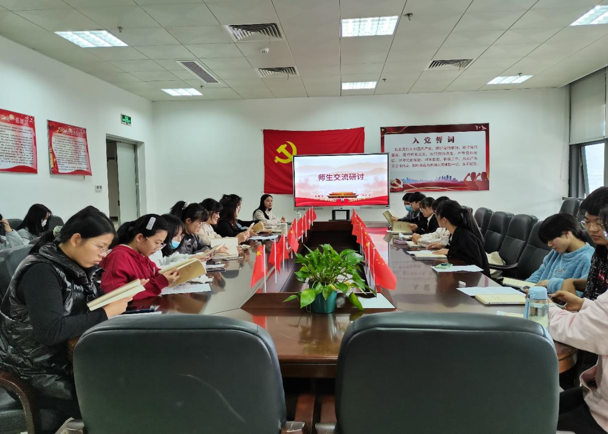 会上,读书社指导老师带领同学们学习了党的十九届六中全会精神,结合学生工作实际,与会师生进行了交流研讨,分享了学习心得;图书馆詹巧霞老师结合十九届六中全会精神的学习,现场推广介绍马克思主义经典著作《共产党宣言》,引导同学们坚持读原著、学原文、悟原理,在阅读与学习中深刻理解“中国共产党为什么能,中国特色社会主义为什么好,归根到底是因为马克思主义行”;图书馆蔡晓霞老师向大家介绍了图书馆数字资源的总体情况和使用方法,以及“中国共产党思想理论资源数据库”“大学专业课学习资源数据库”等平台。