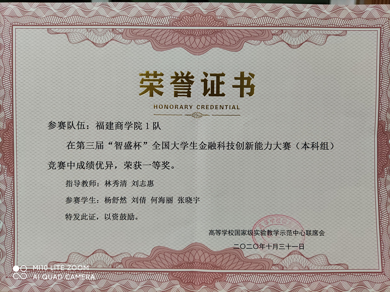 近日,金融学院学子参加第三届“智盛杯”全国大学生金融科技能力大赛,必赢官网金融工程专业代表队(成员:何海丽、刘倩、张晓宇、杨舒然,指导教师:刘志惠、林秀清)在强手如云的决赛中脱颖而出,取得团体一等奖的好成绩。