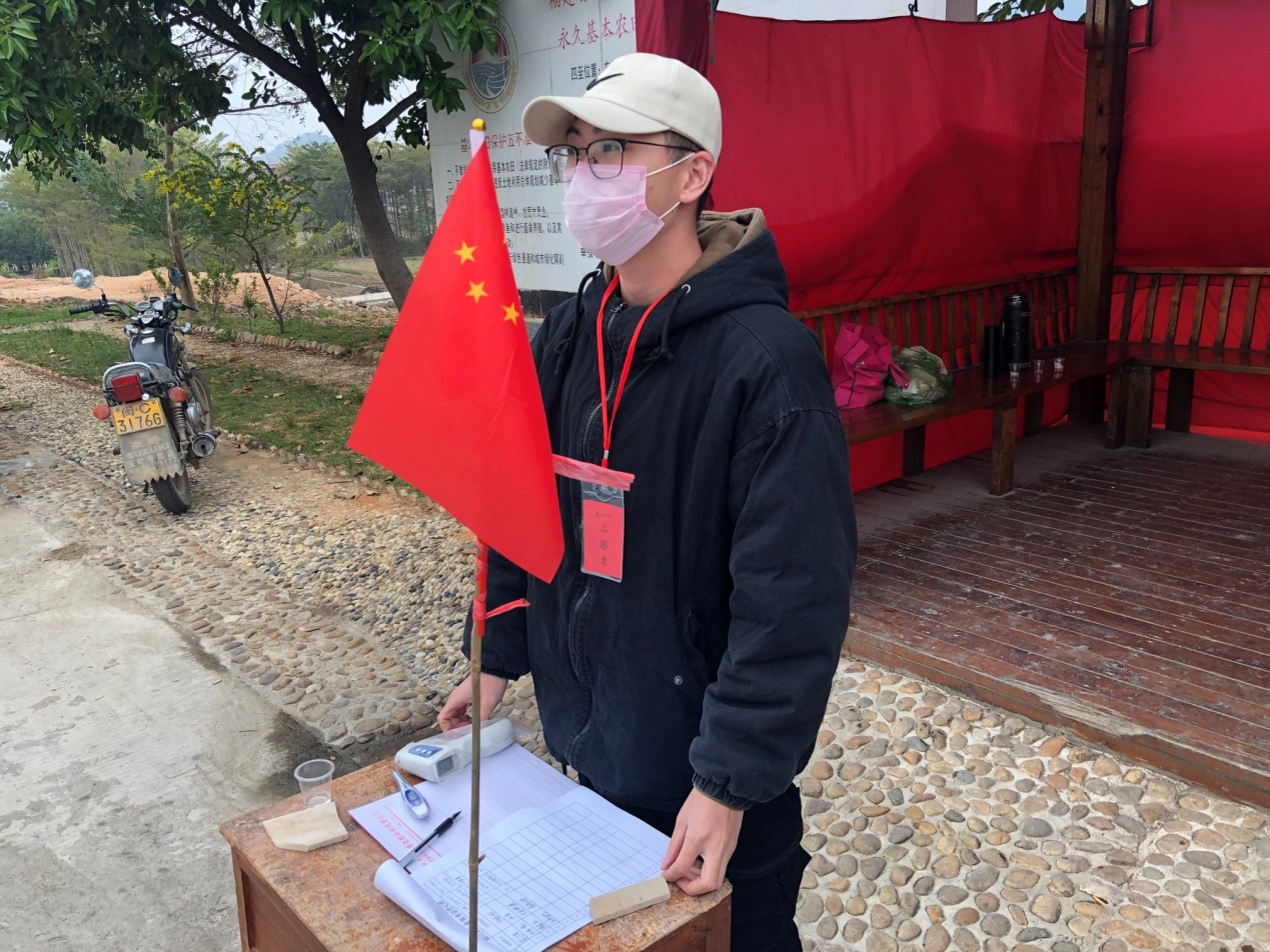 在抗击疫情战役中,学院5个师生党支部76名党员充分发挥党支部的战斗堡垒作用,尤其是学生第一支部学生党员王斌龙同学充分发挥党员先锋模范作用,主动报名参加他所在的南安市美林街道梧山村志愿者活动,积极响应村里号召,在街道入口的路障处进行访客登记,协助测量和排查进出人员的体温及其身体状况,做好疫情防控的宣传解说工作。