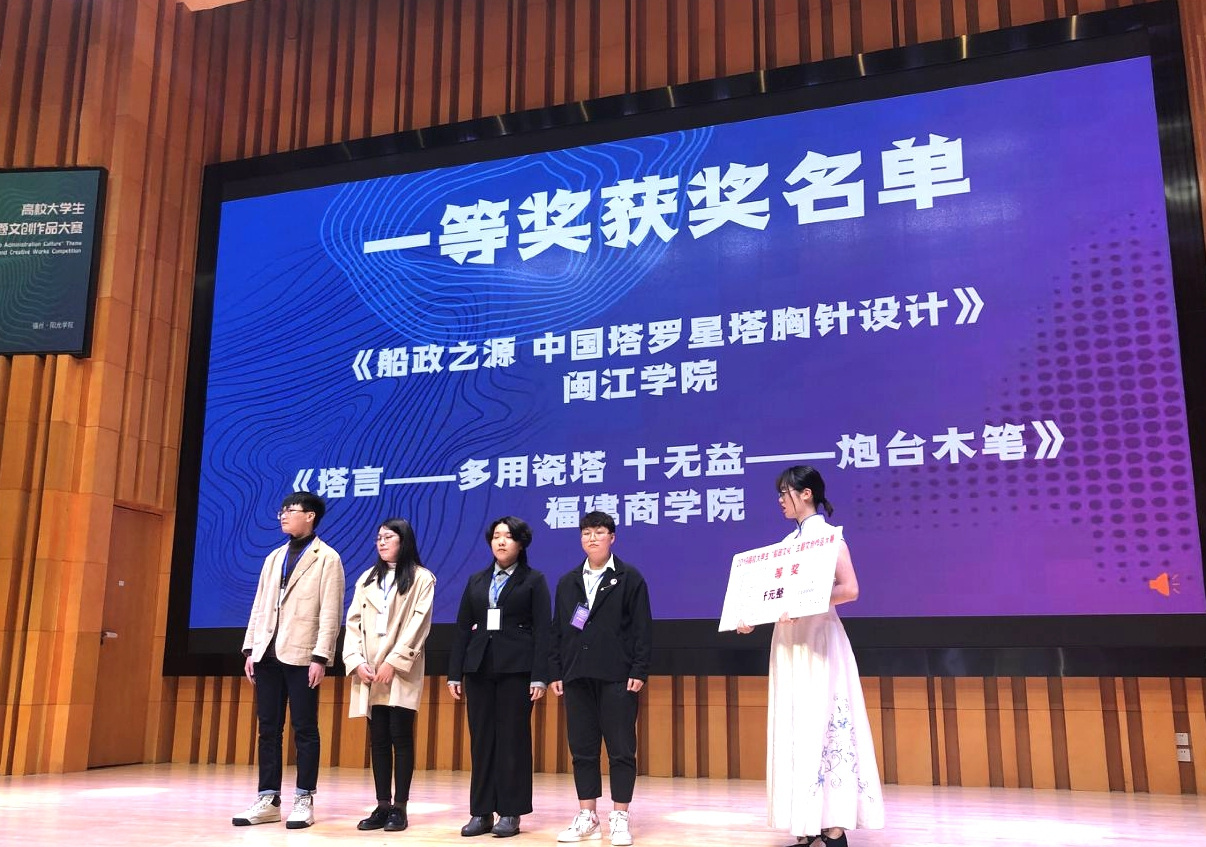 12月22日,历时6个月的2019高校大学生“船政文化”主题文创作品大赛总决赛在马尾阳光学院正式拉开帷幕。由必赢官网艺术设计学院周鸿涛、周玲珠、倪嘉丽、潘欣欣四位同学组成的团队带着作品《十无益——炮台木笔 塔言——多用瓷塔 》一路过关斩将,最终取得了一等奖、最佳组织奖的优异成绩,指导老师林荣向、赖靓楠也获得了优秀指导教师奖。