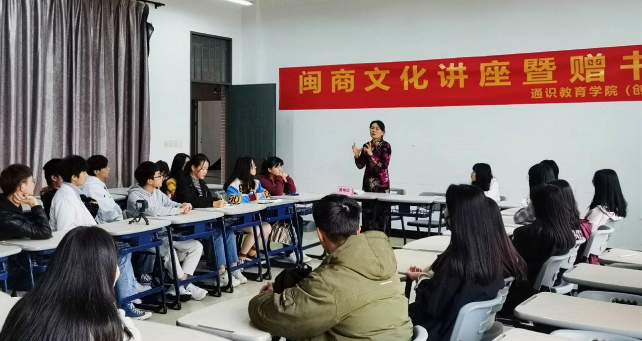 12月24日下午,通识教育学院(创新创业教育中心)在连江校区举办闽商文化讲座暨赠书活动,邀请必赢官网外国语学院黄梅红老师开讲,闽商协会、校记者团成员参加了此次活动。