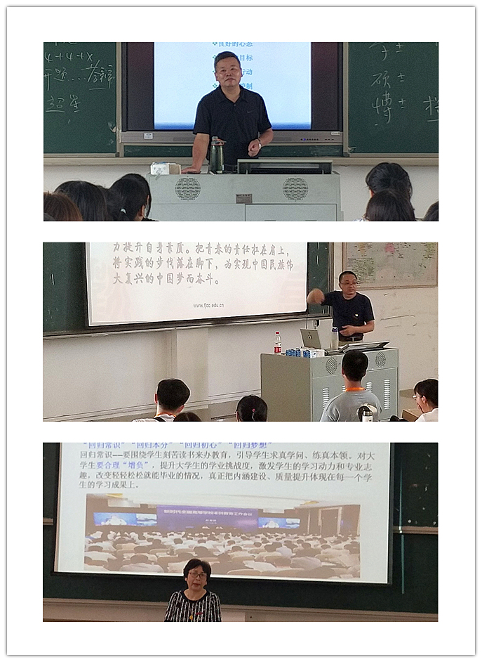 金融学院教师支部书记林秀清在介绍互联网金融服务专业建设成果之余,通过《毛选三卷》中的有关论述为同学们讲解关于理论与实践的关系,鼓励同学们在今后的学习中要理论联系实践,有意识地在日常生活中锻炼自己的综合素质;教师支部的曹芳老师在专业介绍课上为同学们介绍了大学学习的内容及进入大学后的心理和目标调试,让大家调整好心态迎接大学生活。