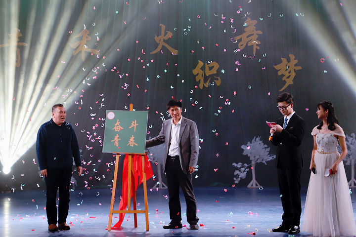 晚会上学生们表演了自编自导欢快的开场舞、诙谐幽默的双人相声、激情澎湃的歌曲串烧、时尚耀眼的模特走秀、轻快悦耳的乐器表演、庄严豪迈的诗歌朗诵等节目,为现场观众呈现了丰盛的视听盛宴。节目间隙还穿插了“管工锦鲤”抽奖活动与十九大知识竞答环节,晚会的亮点纷呈,师生积极参与,其乐融融。在晚会中场,系党总支郭海云副书记、系主任魏仁兴教授共同为主题揭牌,正式启动“把握时代主题,青春奋斗逐梦”主题活动。