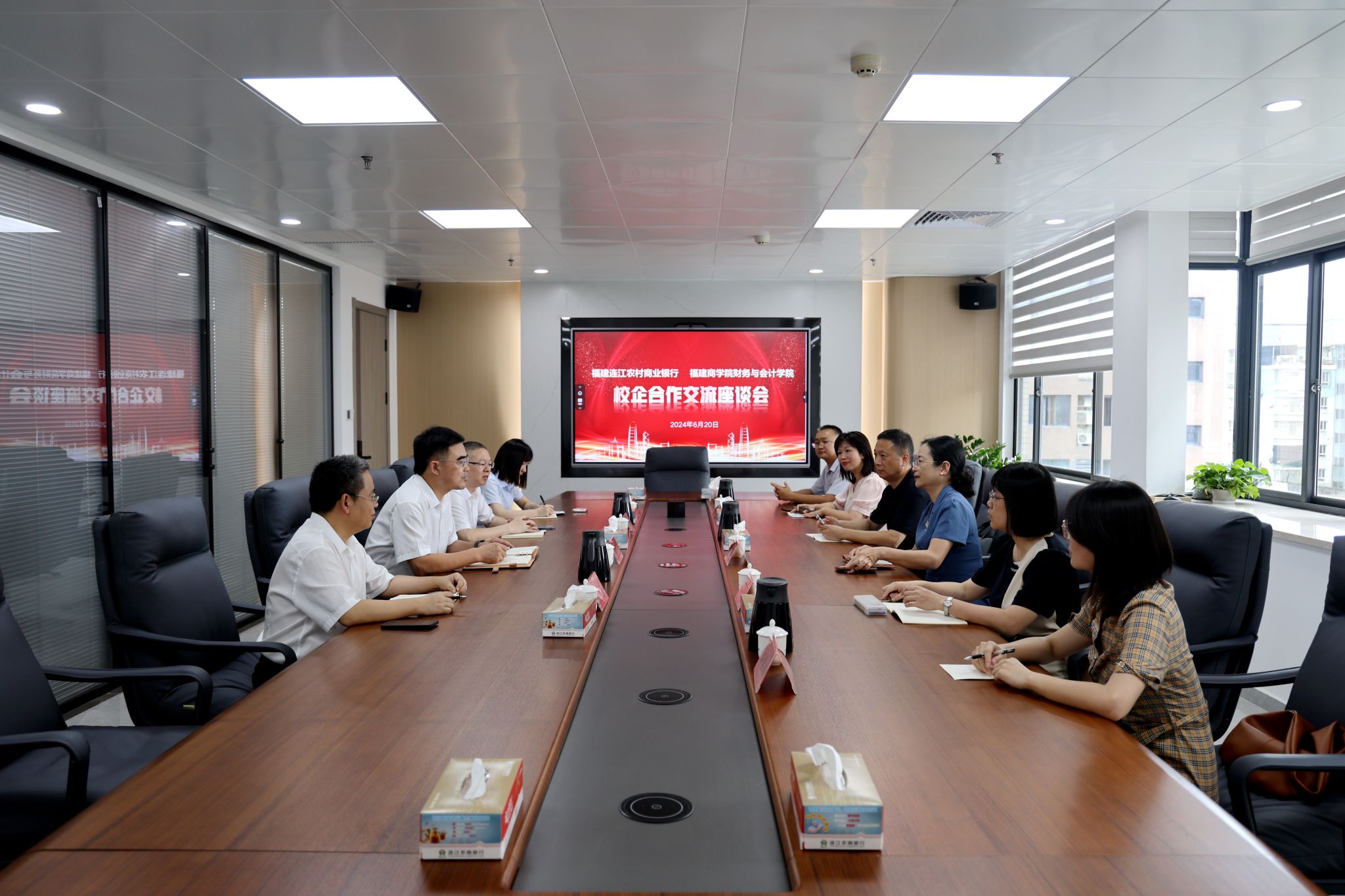 近日,财务与会计学院党政班子、毕业班辅导员一行走访连江农商银行,并与连江农商银行有关领导座谈。