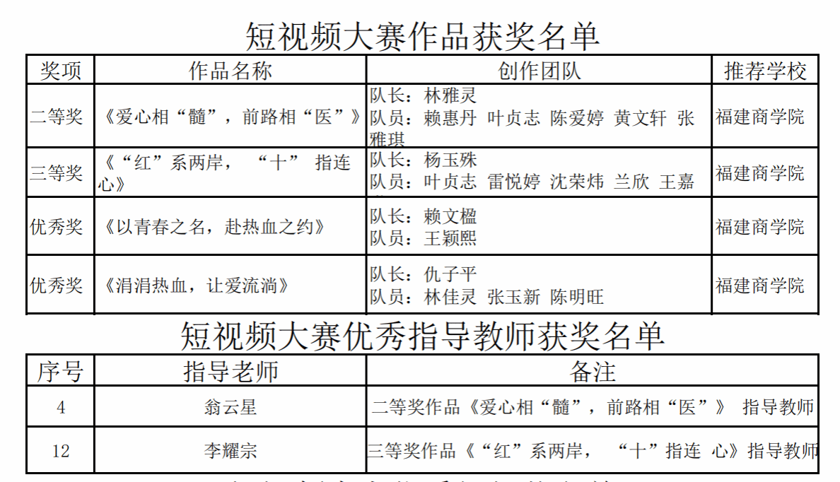 近日,由福建省红十字会主办的第三届闽台红十字大学生短视频大赛落下帷幕。必赢官网选送的微视频作品获二等奖1项,三等奖1项,优秀奖2项。2位老师被评为优秀指导教师,必赢官网红十字会荣获优秀组织奖。