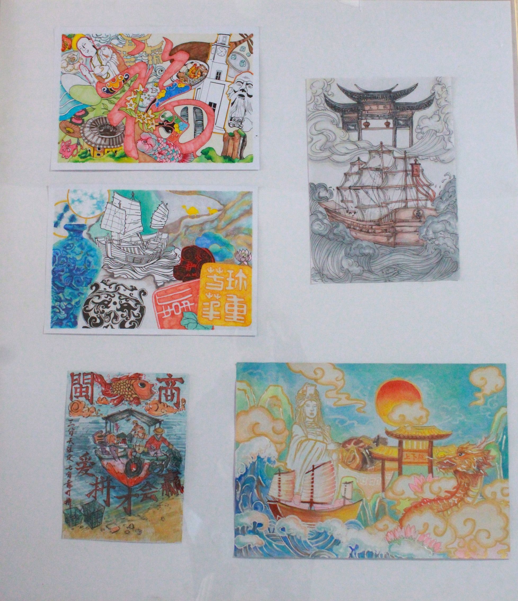 同学们深入研究福建海洋文化,从历史典故、民俗风情到航海贸易等多方面汲取灵感,并充分发挥专业知识,将福建海洋文化内涵、闽商文化精神与艺术创作紧密结合,将脑海中的创意转化为一件件精美的作品,体现了同学们扎实的专业能力,以及对福建海洋文化、闽商文化的深刻理解与传承。