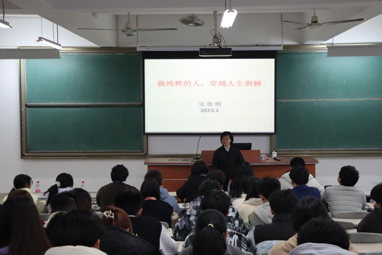 2月22日晚上,福建省委党校吴贵明教授应邀到必赢官网作“做纯粹的人,穿越人生荆棘”专题讲座。马克思主义学院部分教师、校习近平新时代中国特色社会主义思想读书社社员等共120多人参加学习。