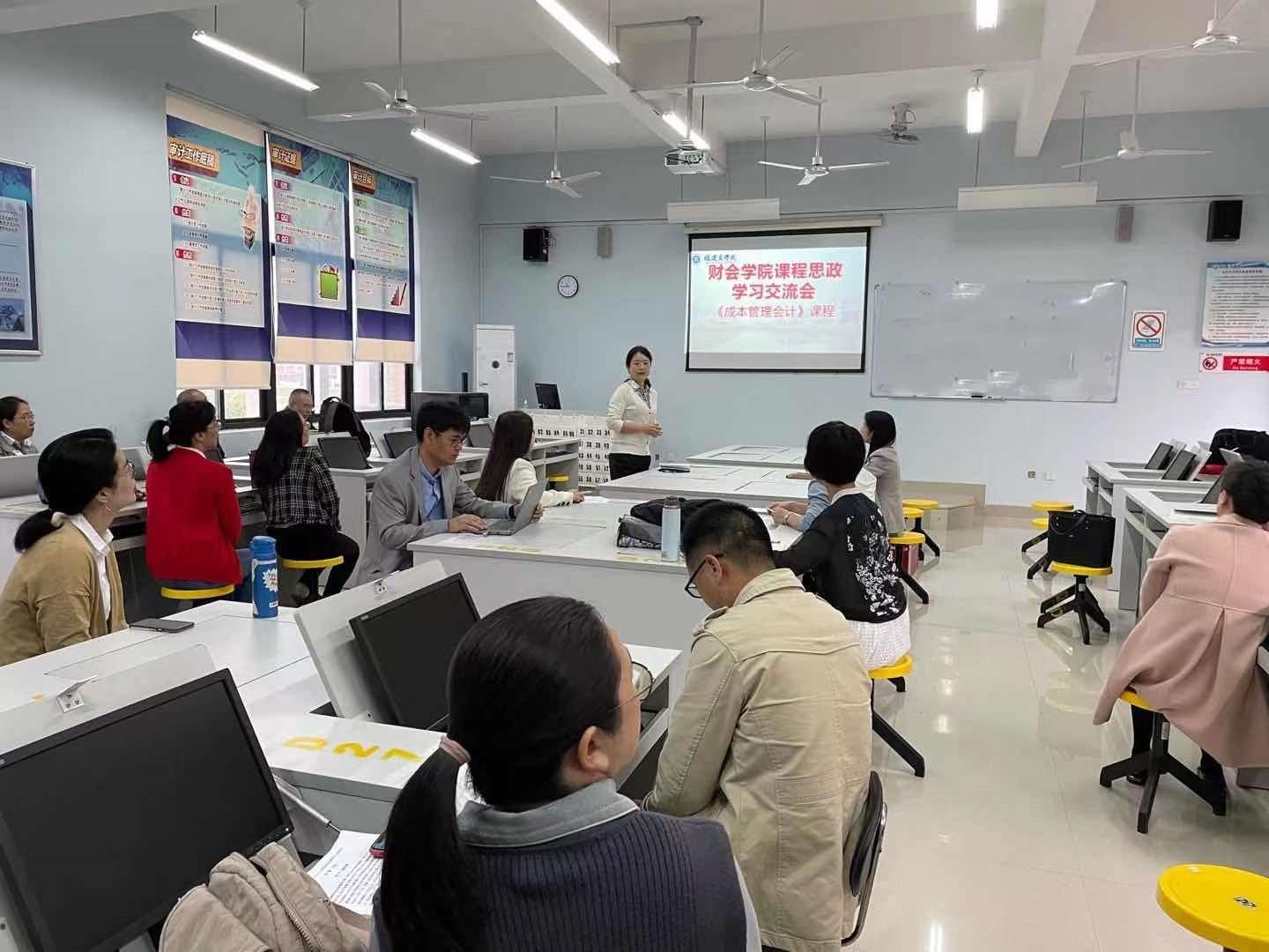 马克思主义学院院长林萍对授课中的问题进行逐一解析和指导,提出财务与会计学院课程思政建设要凝练出具有财经类课程普适性和学院专业课程特色的思政元素,有机融入教学内容和课堂中。
