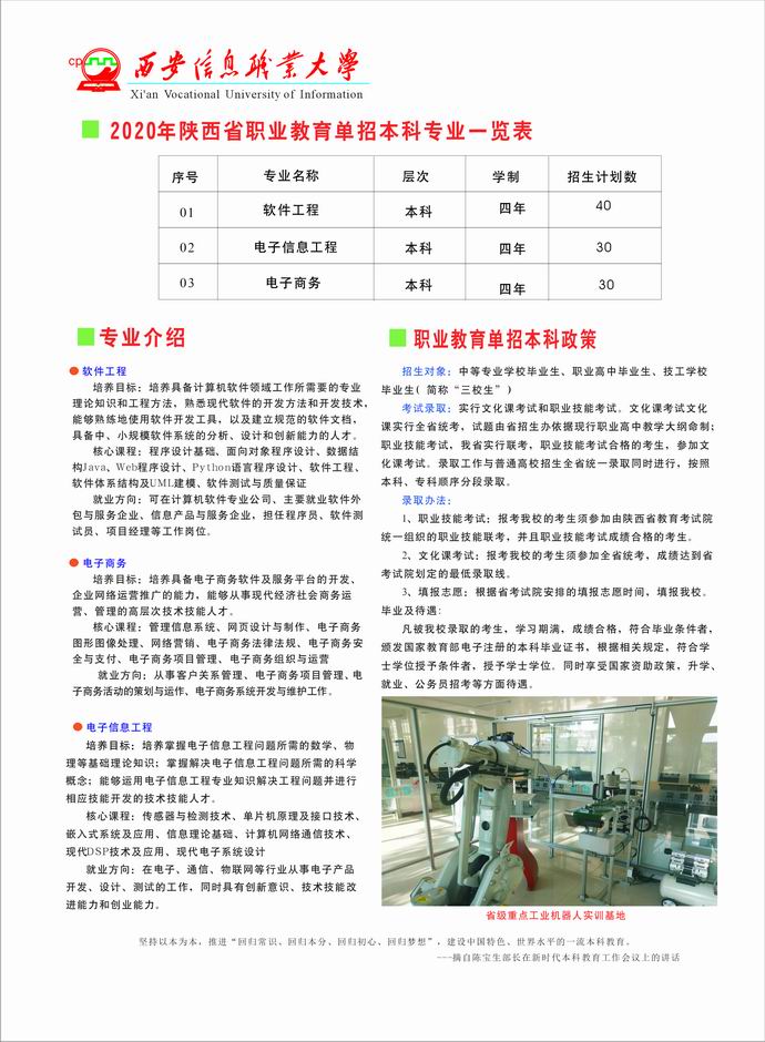 2020年陕西省职业教育单招本科招生简章