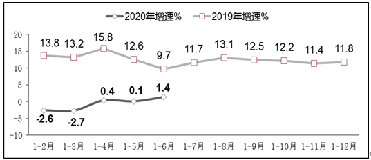 图2 2019年-2020年上半年软件业利润总额增长情况