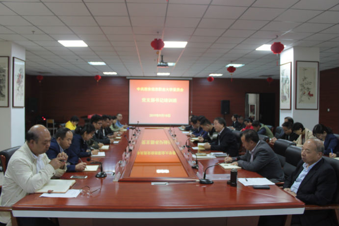 2019年9月18日,党支部书记培训班正式开课,校党委成员、党总支成员和党支部书记共计32人参加了此次培训。培训班集中学习辅导会由校党委委员曹华民同志主持。