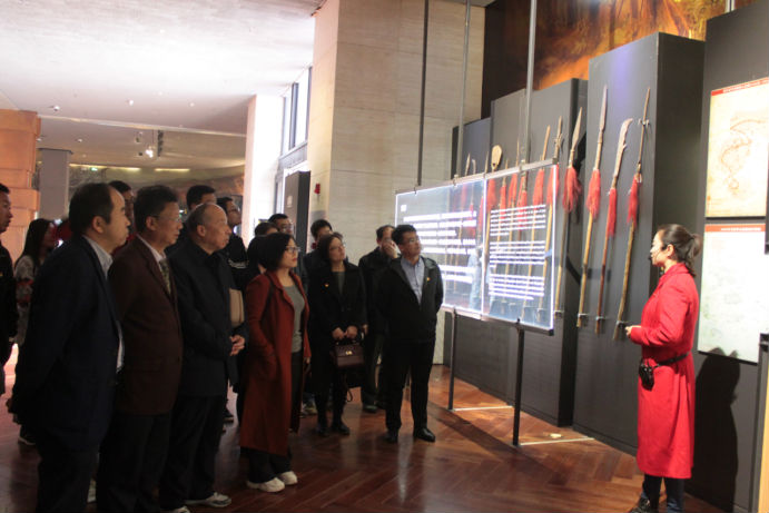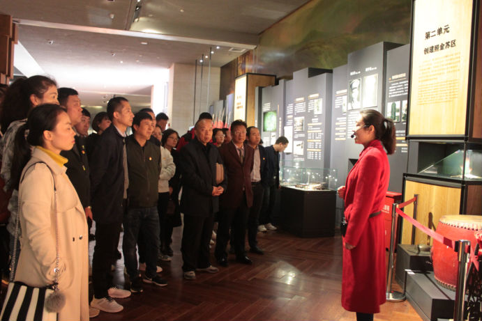 学习参观人员在纪念馆细心聆听讲解员解说