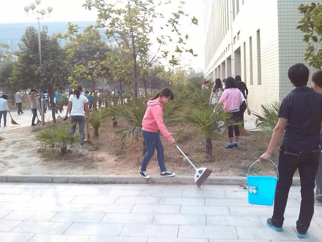 在何维老师的统一安排下,同学们各自拿上扫帚、簸箕和拖把等卫生工具,认真、仔细地打扫教学南楼周围卫生。同学们分工合作,有条不紊的进行着打扫工作,清扫树枝树叶、捡果皮纸屑,大家不怕脏、不怕累,使活动得以有序进行。在全体入党积极分子、学生党员们的共同努力下,经过一个小时顺利完成了卫生打扫任务。使教学南楼的面貌焕然一新。