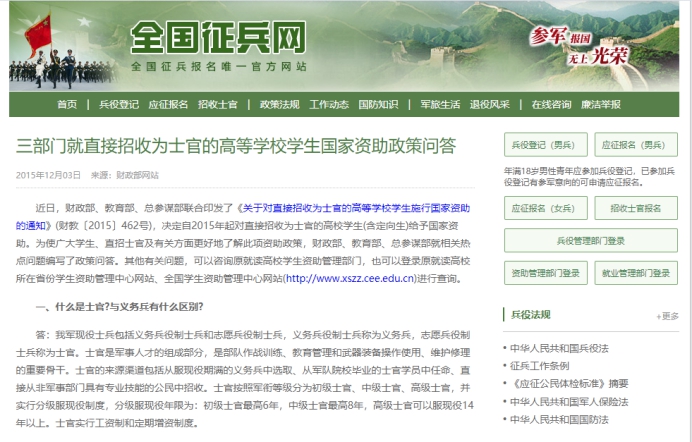 2、完成网上报名后,请密切关注网上审核结论,跟踪掌握应征报名进展情况(直招士官应征进展情况查询),保持通信联络顺畅,根据应征地兵役机关通知要求参加应征。